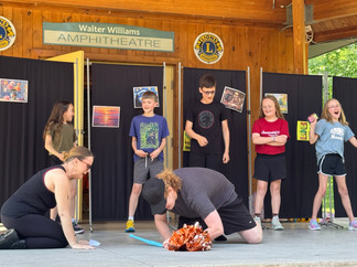 Braeden, Faye and Avika were then joined by Kenner Allen and Kaylee Janushewski to fill out the cast of adventurous kids. They were supported by PPT members in supporting cast roles - Thomas Whitney - also in the teen show - played several characters, and so did PPT adults Brittany Blekinsop and Shar O’Neil. Director Madison Kohli had a cameo as a Granny and Rubyyy Jones (me!), played the Teacher, David Attenborough and a school bus! It was such a sweet and tender-hearted show; each kid really put their all into it and brought incredible energy to this important story.